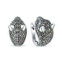 Серьги из чернёного серебра с натуральным гранатом и марказитами - Кошки 925 про