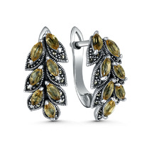 Серьги из чернёного серебра с натуральным цитрином и марказитами 925 пробы HE175