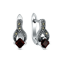 Серьги из чернёного серебра с натуральным гранатом и марказитами 925 пробы HE175