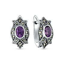 Серьги из чернёного серебра с натуральным аметистом и марказитами 925 пробы HE03