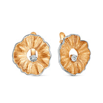 Серьги из золочёного серебра с бриллиантом и частичным родированием 925 пробы С-