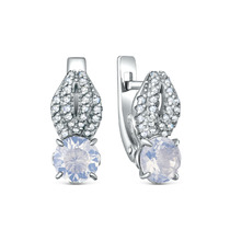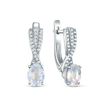 Серьги из серебра с плавленым кварцем цвета лунный камень и фианитами родированн