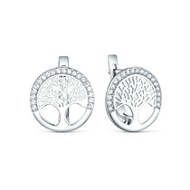 Серьги из серебра с фианитами родированные - Дерево жизни 925 пробы С-4857-Р