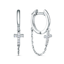 Серьги из серебра с крестами и фианитами родированные 925 пробы 11-1971р