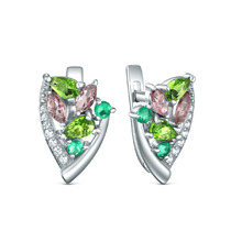 Серьги из серебра с плавленым кварцем микс и фианитами родированные 925 пробы 2-