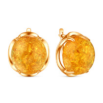 Серьги из золочёного серебра с янтарём 03-802-0120-09