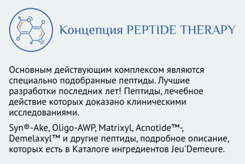 J*e*u D*e*m*e*u*r*e - линейки полного ухода за кожей и волосами на пептидах и гиалуроновой кислоте. Доказанный терапевтический эффект против акне, выпадения волос, атопического дерматита (на всё - своя линейка).