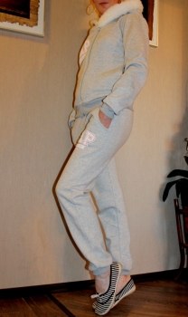 Костюм теплый, размер М отлично сел, на рост 170 см длина брюк как раз, заказала к нему сникерсы белые))) одеваю постоянно, так как лето пока жарой не радует, вообще брала на весну-осень )))) постирала - надписи все на месте, ткань не скаталась, мех отлично расчесался.