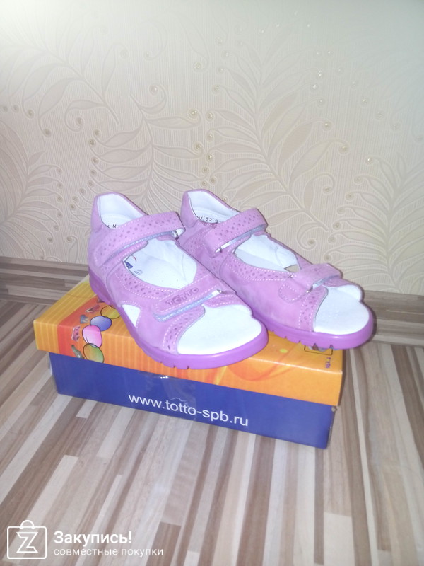 Не первый раз покупаю дочке для детского сада и улицы, сандалии фирмы Тотто -это очень удобная обувь, верх и подкладка натуральная кожа. Задник жесткий, подошва дышащая, подходит для профилактики плоскостопия у ребенка. В этот раз взяла модель 10216 (сирень 021) размер 32- по стельке 20, 5, размерной сетке соответствует.