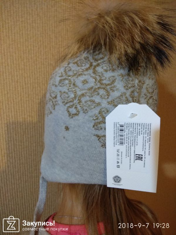 покупала Шапку зимнюю на девочку Кортиль, арт 60439, серый с золотистой вышивкой. Теплая, подклад хб, завязочки. Помпон енотовый, не очень распушился, думаю распустится. К сожалению , не совпали с размером, рр 52-54, мне кажется все-таки 52рр. Пристраиваю!!! по цене закупки 1000р