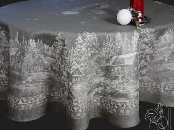 Скатерть круглая жаккардовая пестротканая Рождество-сер. Д-178 см. Состав: п/лен.