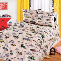 ВЛАДЛЕН Детское постельное бельё из поплина 1.5сп Машинки (1742)