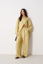 Брюки оверсайз, с цельнокроеным поясом. Внутри пояса резина 40RV и вставлен шнур с эглетом  8EKWC-1 8мм. В боковых швах карманы с кулирным полотном. Низ обработан швом вподгибку.