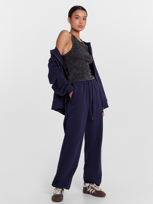 Брюки прямые свободные. Пояс цельнокроеный с эластичной тесьмой внутри. С внешней стороны пояса пробиты петли и втянут шнур (8KXW-1 8мм.) с узлом на концах. В боковых швах обработаны карманы. Подкладка кармана из основного полотна. Низ брюк обработан швом впобгибку с эластичной тесьмой внутри.