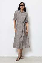 Платье женское полуприлегающего силуэта из ткани.