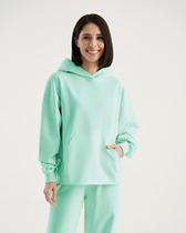 BASIC + Толстовка свободная, оверсайз. Горловина округлой формы с капюшоном. Шов втачивания капюшона по горловине спинки закрыт тесьмой (хб 10мм). Рукав втачной, длинный с отрезными манжетами из рибаны. Линия плеча спущена. По переду накладной карман. Центральная застежка на молнию (OpenEnd, StandartMetal №8 (7.6мм), слайдер Auto-Lock). По низу толстовки отрезной пояс из рибаны. + навесной ярлык BASIC +
