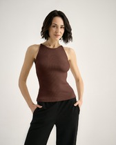 Майка из кашкорсе. Проймы и горловина окантованы, с переходом на короткую бретель