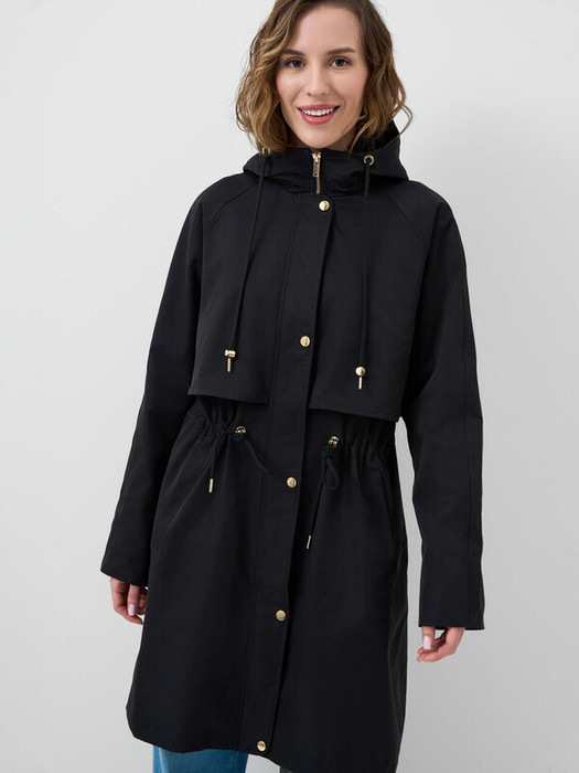 Женский плащ средней длины, выполненный в современном стиле с удобным капюшоном и приталенным силуэтом благодаря утяжке на талии. Температурный режим от +20С до +10С. Ткань с ветрозащитным и водоотталкивающим покрытием. Внутри гладкая подкладка. Капюшон с утяжкой шнуром. Два вместительных кармана. Утяжка на талии и удобная застежка — молния с ветрозащитной защитной планкой на кнопках. Внутри рукавов — мягкие эластичные манжеты для дополнительного комфорта и защиты от ветра.