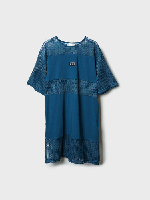 Пляжное женское оверсайз платье. Модель с длиной мини, выполнена из комбинации хлопкового трикотажа джерси и сетки.