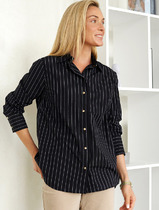 Женская рубашка с анималистичным принтом. Модель свободного кроя с длинным рукавом. Выполнена из лёгкой и полупрозрачной ткани, что придаёт образу воздушность. У рубашки классический воротник, застёжка на пуговицы и два нагрудных накладных кармана. Рукава с манжетами на пуговицах.
