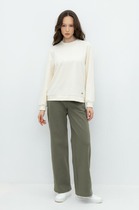 Пояс регулируется вязаным шнуром в тон брюк. Плотная фактура вязания согревает и сохраняет форму во время носки.