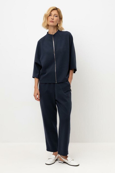 Брюки из высококачественного трикотажного полотна. За счет фактуры переплетения и специальных обработок сохраняют силуэт и форму. Хлопок в составе добавляет комфорт при носке. Эластичный пояс регулируемый шнуром обеспечивает идеальную посадку. В сочетании с жакетом из этой коллекции вы создадите расслабленный образ для летних дней.