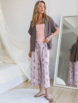 Укороченные широкие брюки кюлоты c принтом на резинке из 100% хлопка