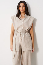 Вязаный жилет с элегантным глубоким вырезом. В составе 50% шерсти и 50% акрила. Шерсть в составе сохраняет тепло, а акрил делает изделие мягким и объемным.