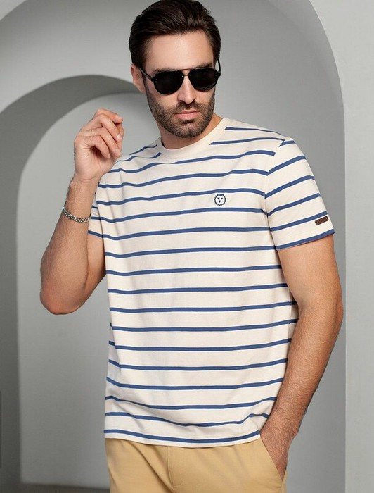 21.04 Vilatte Футболка из премиального хлопка с эластаном U49.024 экрю-св.синий