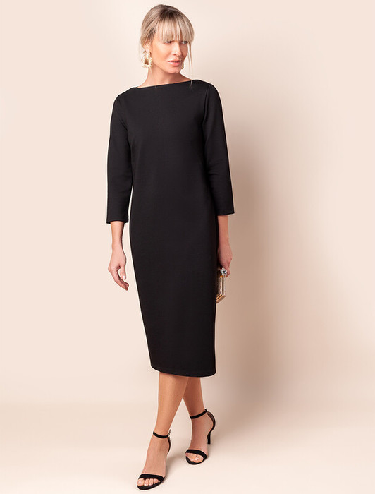 Платье-футляр выполнено из плотного джерси. Посадка по фигуре и эластичная ткань, позволяют изделию идеально подчеркнуть изгибы тела, не сковывая при этом движения.