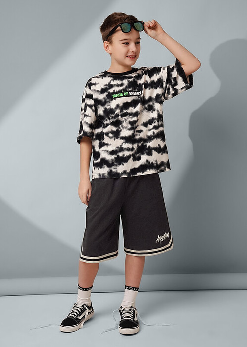 Шорты из футера 2-х нитки с эластичным поясом и регулировкой по талии. Имеют функциональные карманы в боковых швах, украшены стильным принтом и трендовой тесьмой по нижнему краю. Комфортная модель для повседневного гардероба.
