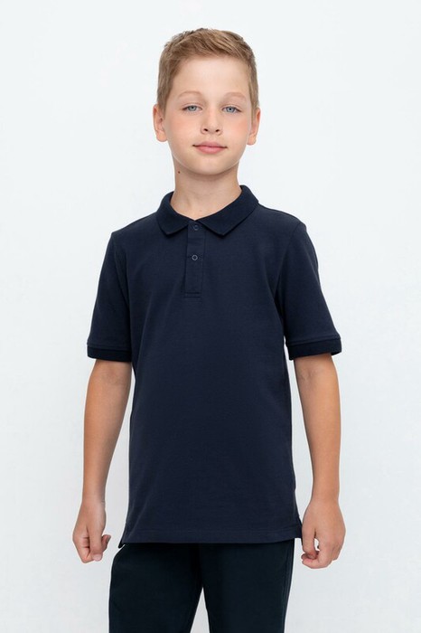 Поло для мальчика из высококачественного трикотажного полотна пике. У изделия вязаный воротник, манжеты и застежка спереди на пуговицы.