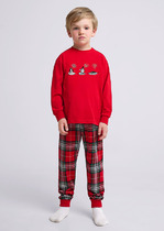 Трикотажная пижама из натурального хлопка. Джемпер с длинными втачными рукавами и брюки с эластичной резинкой в поясе. Мягкие манжеты на рукавах и по низу брюк. Оригинальная набивка выполнена из стойких текстильных гипоаллергенных красителей. Изделие сохраняет цвет и форму после многократных стирок. Все трикотажные полотна производятся в соответствии с нормами швейцарского сертификата ЭкоТекс.