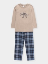 Пижама для мальчика из натурального хлопка. Джемпер с длинными втачными рукавами и брюки с эластичной резинкой в поясе. Мягкие манжеты по низу брюк сделаны из материала в рубчик. Оригинальная набивка и принт выполнены из стойких текстильных гипоаллергенных красителей. Изделие сохраняет цвет и форму после многократных стирок. Все трикотажные полотна производятся в соответствии с нормами швейцарского сертификата ЭкоТекс.