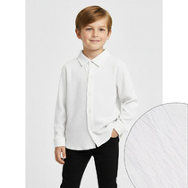 Свободная трикотажная рубашка для мальчика из мягкого петельчатого футера. Застёгивается на кнопки. Модель с закругленным низом и спущенным плечом.