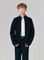 Бомбер с контрастными рукавами для мальчика. Изготовлен из мягкого петельчатого трикотажа. Застёгивается на кнопки. Воротник, манжеты и пояс - вязаные. Спереди карманы с листочкой.