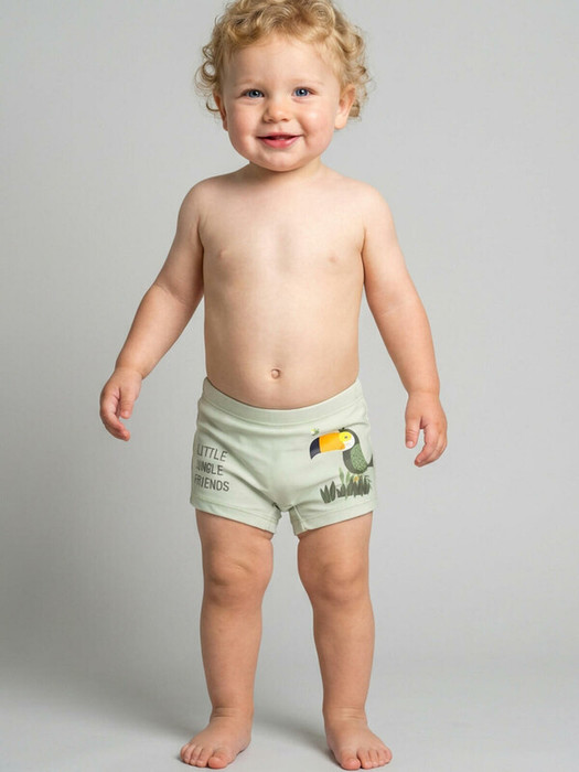 Плавки-шорты детские средней длины, прилегающего силуэта для мальчика. Изготовлены из эластичного трикотажа, с подкладкой для большего комфорта. Ткань устойчива к солнцу и солёной воде, благодаря UF-защите сохраняет насыщенность цвета и структуру волокон. В поясе — удобная резинка и регулируемый шнурок.