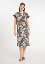 Брюки для дома из трикотажного полотна футер 2х-нит. По переду и спинке декоративные резы. Спереди накладные карманы,принт. По талии притачной пояс на внутренней резинке,вшивка по спинке. По низу изделия манжет с внутренней резинкой.