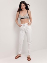 Джинсы mom в пепельном оттенке идеально подходят для расслабленного повседневного стиля. Модель поможет создать непринуждённые стильные луки, а её умеренно свободный силуэт прекрасно подчеркнёт фигуру.