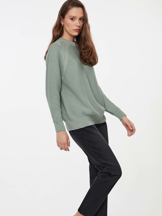 Фактурный джемпер объемного силуэта поможет подчеркнуть индивидуальность и добавит женственность в повседневный образ. PREMIUM COTTON: хлопок премиального качества комфортный, приятный к телу и «дышащий». · круглый вырез горловины· длинные рукава-реглан· объемный силуэт· фактурное переплетение · пряжа с хлопком премиального качества · металлическая пластинка с логотипом бренда· сохранение формы и цвета при соблюдении рекомендаций по уходу· лаконично, женственно и элегантно.
