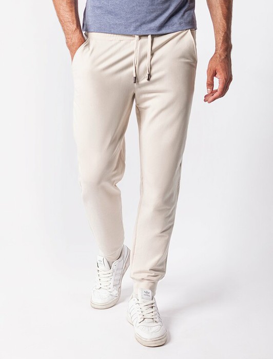 Брюки-джоггеры выполнены из эластичного футера. Изделие с двумя боковыми и одним задним карманом украшено логотипом бренда. Посадка регулируется шнуром, продетым в широкий эластичный пояс. Мягкий и плотный материал хорошо пропускает воздух, а наличие ПЭ в составе способствует формоустойчивости и легкости изделия. Сочетается в костюме с худи U49.039