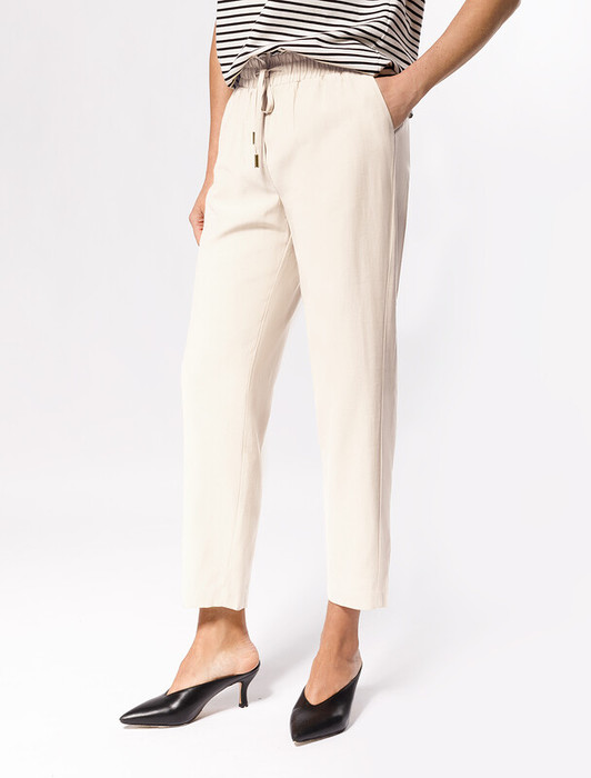 09.04 Vilatte Брюки из плотного лиоцела на резинке D24.218 кокосово-молочный
