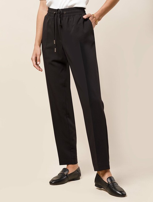 Брюки выполнены из премиальной поливискозы. Модель дополнена поясом на резинке с регулируемым шнурком. Изделие хорошо подойдет как для строгого делового образа с блузкой и жакетом, так и для более расслабленного  с футболкой и водолазкой. Эластичный материал изделия поддерживает оптимальный микроклимат, формоустойчивость  и комфорт в течение всего дня.