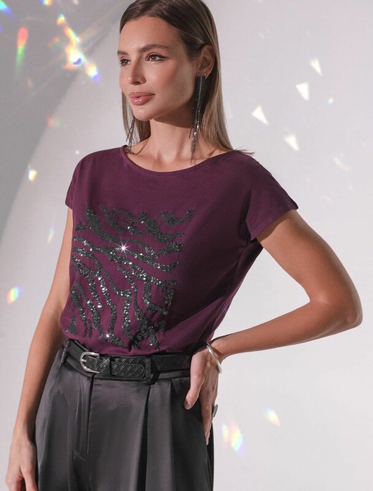 Совместные покупки Челябинск Женская одежда Футболки — 21.04 Vilatte Футболка D49.134 бургунди_зебра
