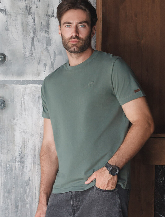 21.04 Vilatte Футболка из премиального хлопка с эластаном U49.009 т.оливковый