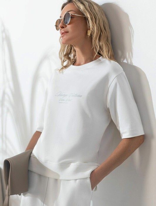 Совместные покупки Челябинск Женская одежда Футболки — 09.04 Vilatte Футболка свободная с принтом из футера двухнитки с эластаном D49.