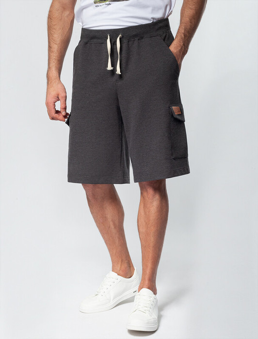 Шорты выполнены из легкого футера с эластаном. Мягкий материал хорошо пропускает воздух и поддерживает оптимальный микроклимат даже в жаркое время года, поэтому в изделии будет комфортно в течении всего дня. На кармане нашивка логотип бренда из эко-кожи.
