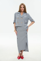 Юбка выполнена из вискозы с лиоцеллом. Модель А-силуэта кроенная по косой. Ткань изящно блестит и приятно охлаждает кожу в жаркое время года. Модель сечетается в костюме с топом D23.062 и блузкой D29.263