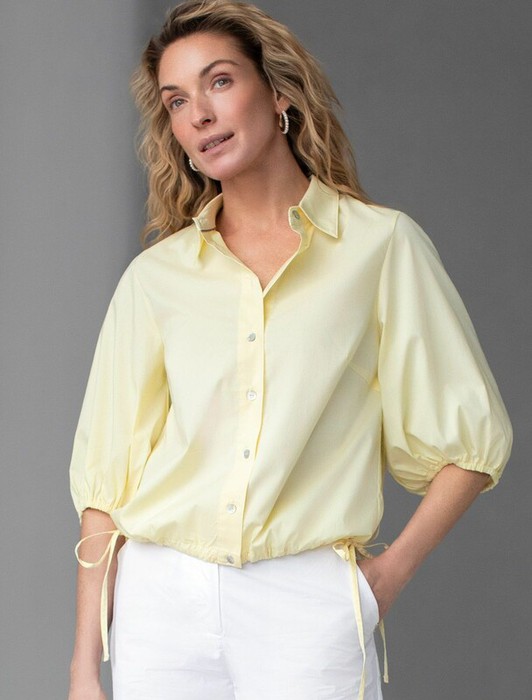 Укороченная блузка темно-синего цвета из эластичного хлопка идеальна на весну и лето. Стильная модель с пышными рукавами буфами создает эффектный и женственный образ, который подойдет как для деловой работы, так и для повседневной носки. Практичная кулиска по низу держит форму изделия, подчеркивая талию и создавая аккуратный силуэт, а так же позволяет регулировать посадку, добавляя функциональности и удобства. Благодаря сочетанию качества материала и продуманного дизайна, рубашка хорошо сидит и на больших размерах, обеспечивая комфорт и свободу движений. Короткие рукава фонарики придают образу модный акцент, делая его более выразительным и динамичным. Натуральная ткань гарантирует комфорт и воздухопроницаемость, что особенно важно в теплое время года.
