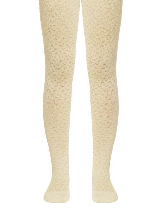 Мягкие эластичные удобные и практичные тонкие детские колготки из хлопка и вискозы, с жаккардовыми рисунками, вывязанными блестящей вискозной нитью. Для девочек.